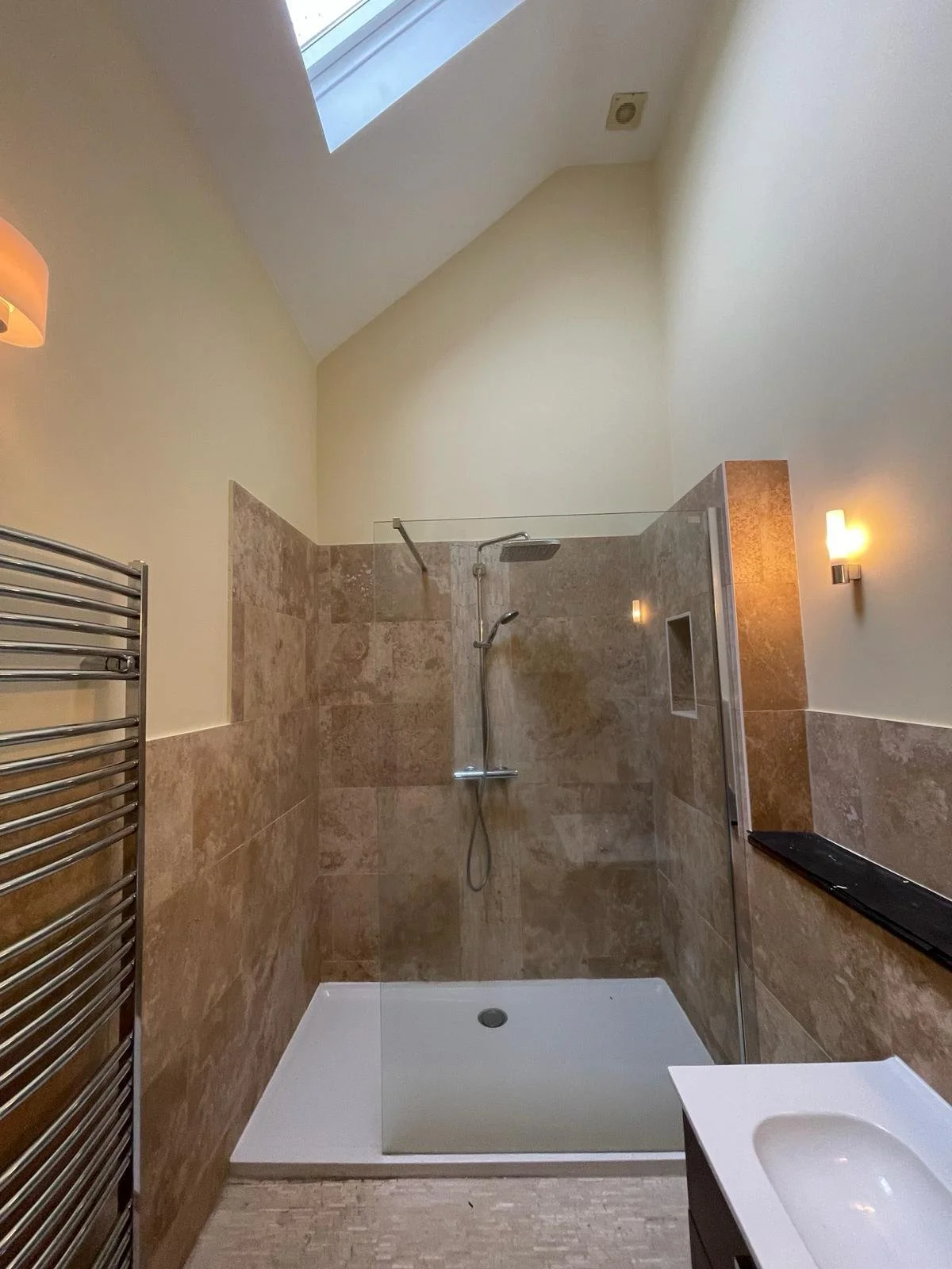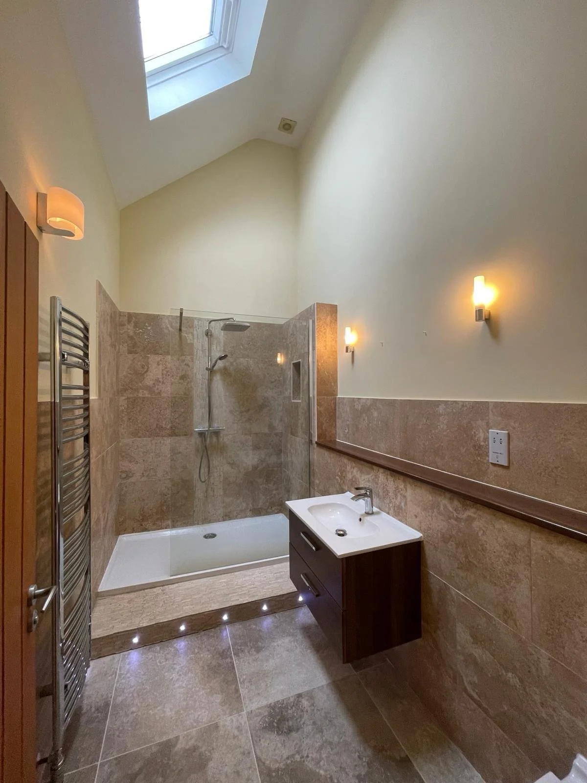 To fully address the issue, we stripped out the affected areas and implemented a targeted drying program for the walls and floors. Once the structure was stabilised, we supplied and installed a brand-new bathroom suite, tiles, and decorative finishes, restoring the space to a high standard.